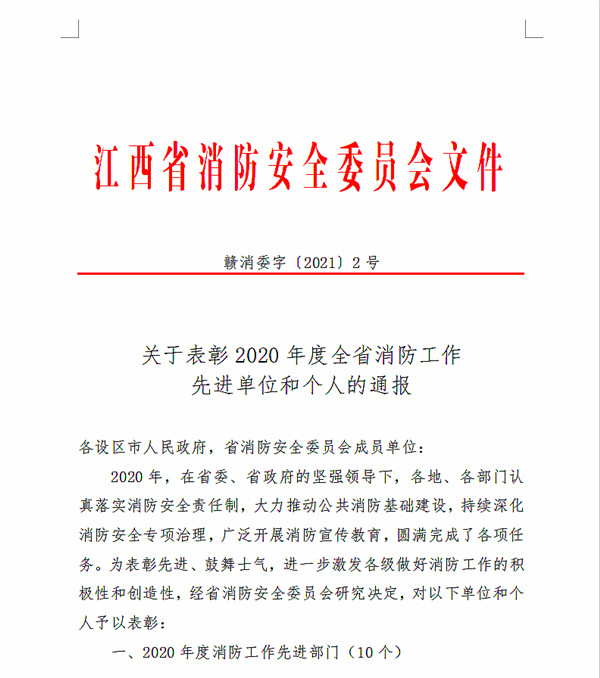 《關(guān)于表彰2020年度全省消防工作先進(jìn)單位和個(gè)人的通報(bào)》