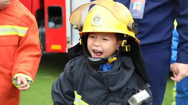 小朋友變身消防員,笑開(kāi)了花。藍(lán)永貴攝
