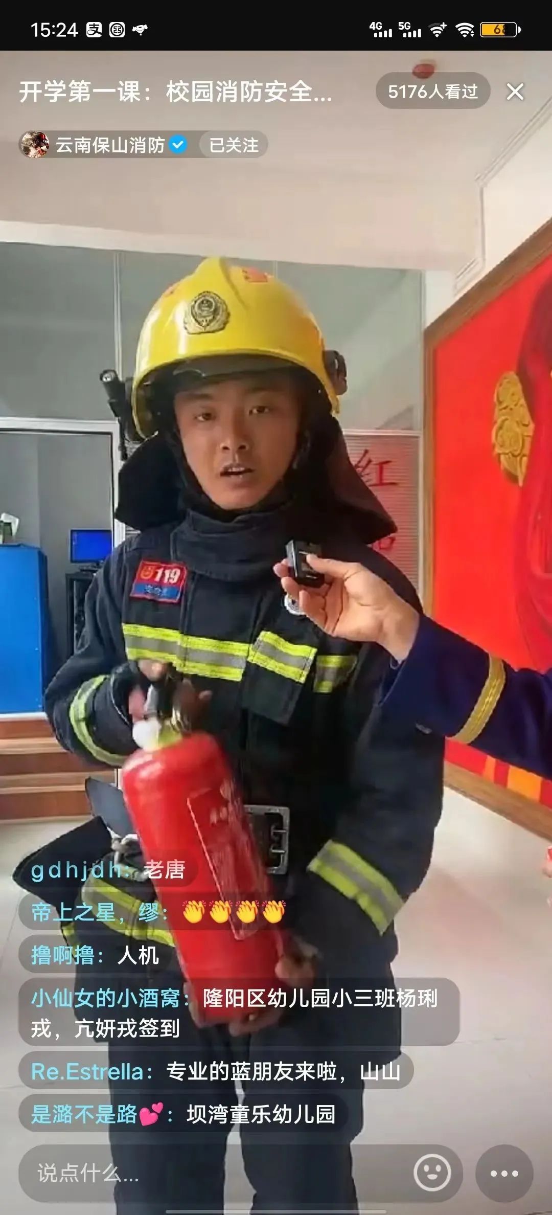 新學(xué)期伊始為進(jìn)一步做好校園消防安全工作近期,全省各級(jí)消防救援隊(duì)伍持續(xù)開展校園消防安全宣傳活動(dòng)集中排查校園消防安全隱患為師生創(chuàng)造了一個(gè)安全、穩(wěn)定、和諧的育人環(huán)境保山網(wǎng)絡(luò)直播開啟第一課保山市消防救援支隊(duì)聯(lián)合市教育體育局通過抖音、快手、微信視頻號(hào)等新媒體平臺(tái),開展了校園消防安全“開學(xué)第一課”網(wǎng)絡(luò)直播活動(dòng),通過對(duì)廣大師生和家長(zhǎng)進(jìn)行“云教學(xué)”“云互動(dòng)”,大力科普消防安全常識(shí),提高自防自救能力。