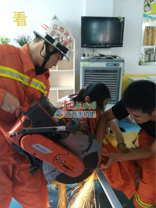 宜春一幼兒園內(nèi)女童手卡鐵床孔 消防官兵鋸斷鐵架救人(圖)